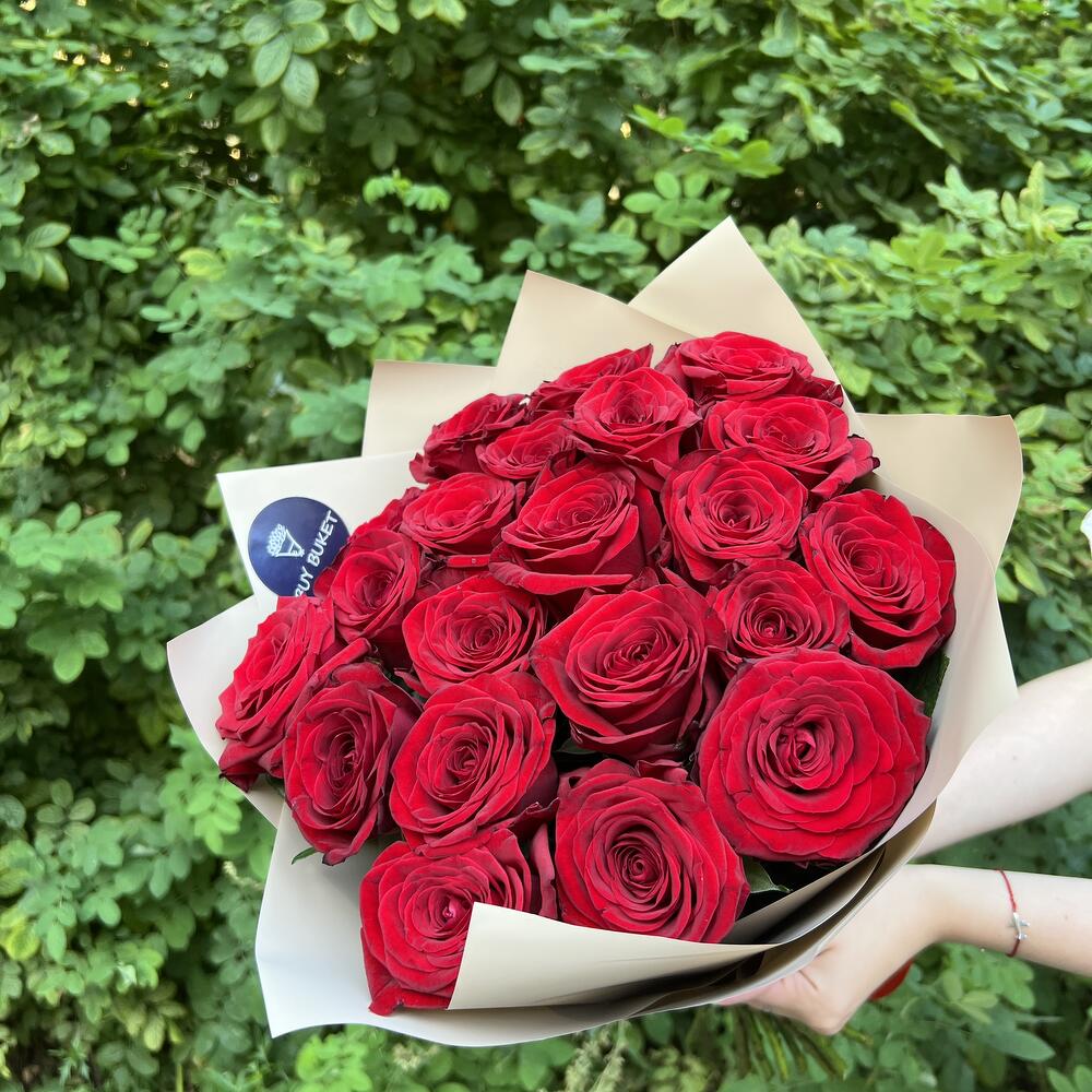 Букет из 21 красной розы 50см