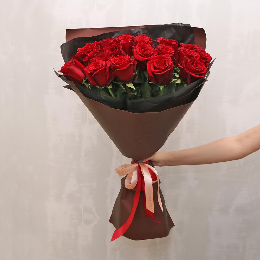 Букет из 25 красных роз длиной 40 см
