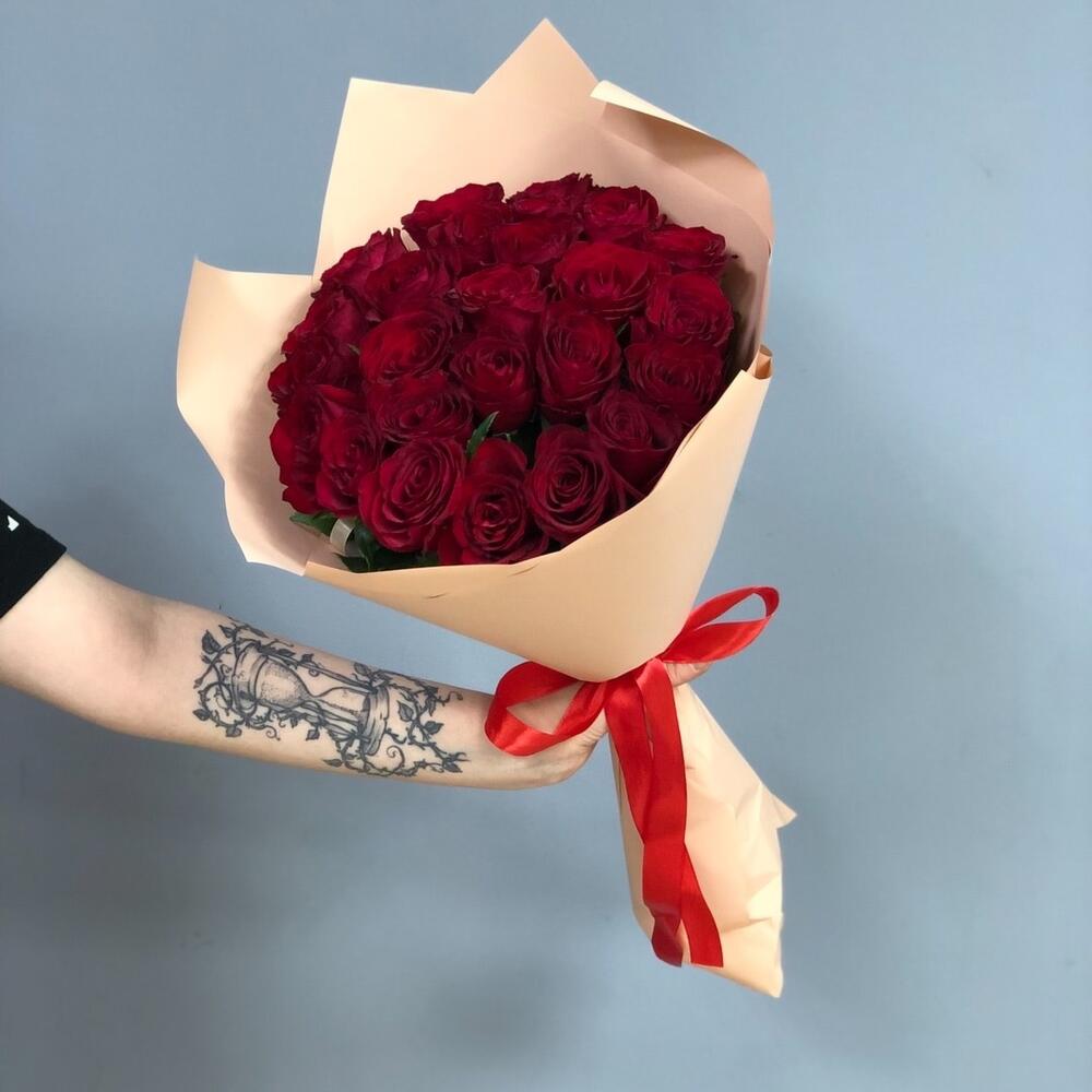 Лента атласная – 1 шт.Матовая пленка – 1 шт.Роза – 25 шт.