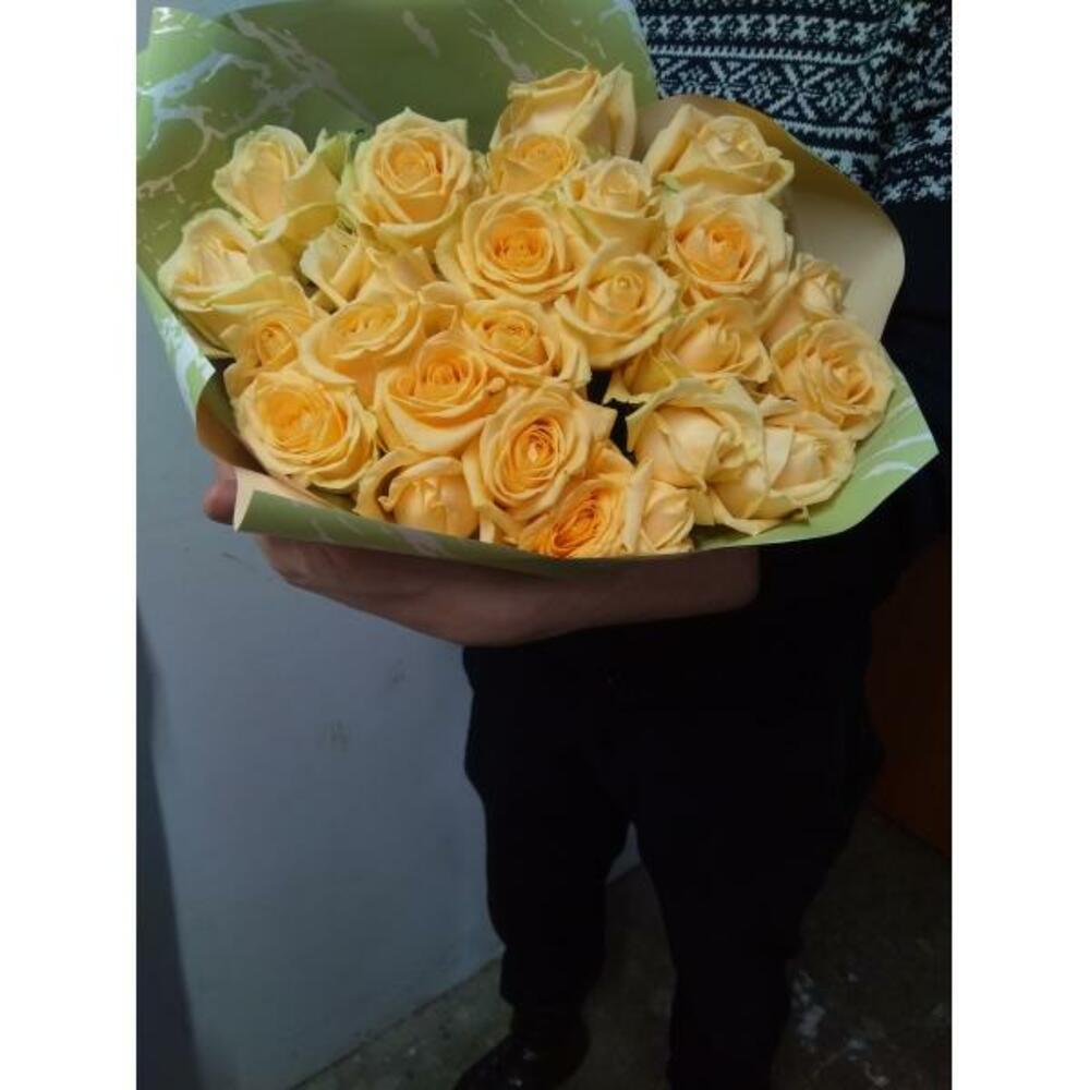 Букет из 25 роз, Пич Аваланш, кремовый длиной 60 см, производства Россия