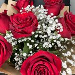 Букет из 7 красных роз и белой гипсофилы “Классика”