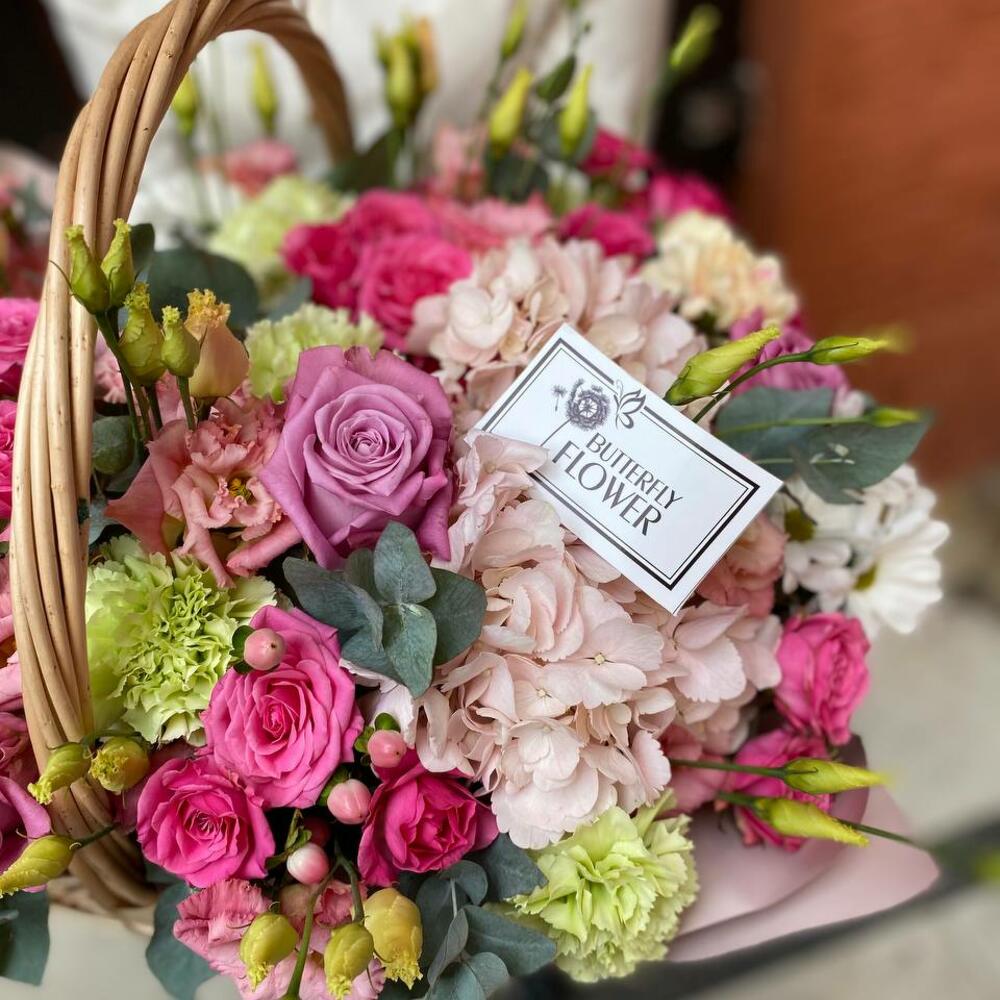 Метки: от 5000 руб, цветы в корзине