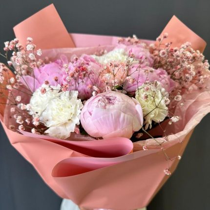 Букет с пионами, сиренью и ранункулюсами