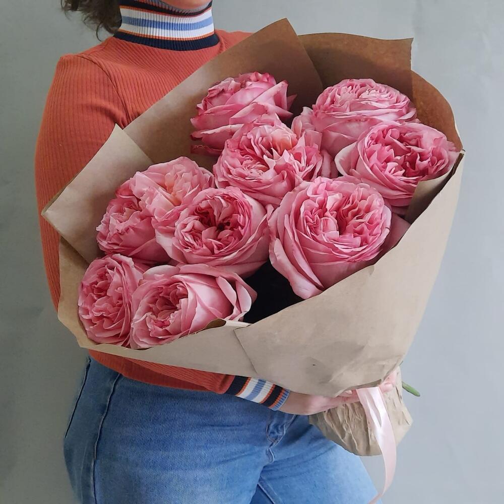 роза пинк экспрешн – 9 шт.Упаковка крафт – 1 шт.Лента атласная – 1 шт.