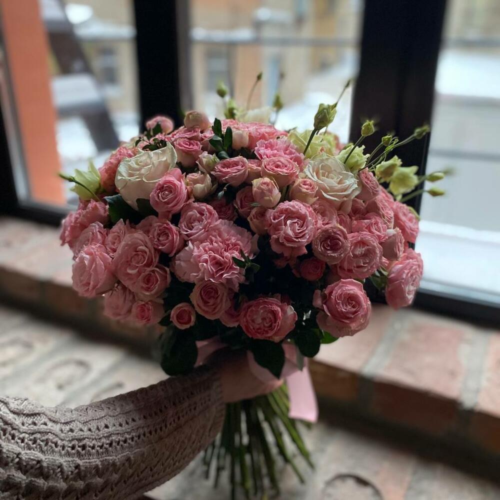 Букет из пионовидных, кустовых роз и эустомы “50 первых поцелуев”