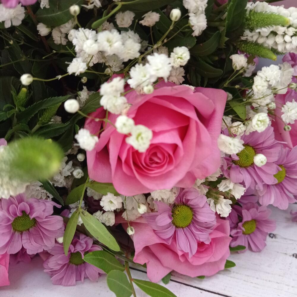 Букет из розовых кустовых роз