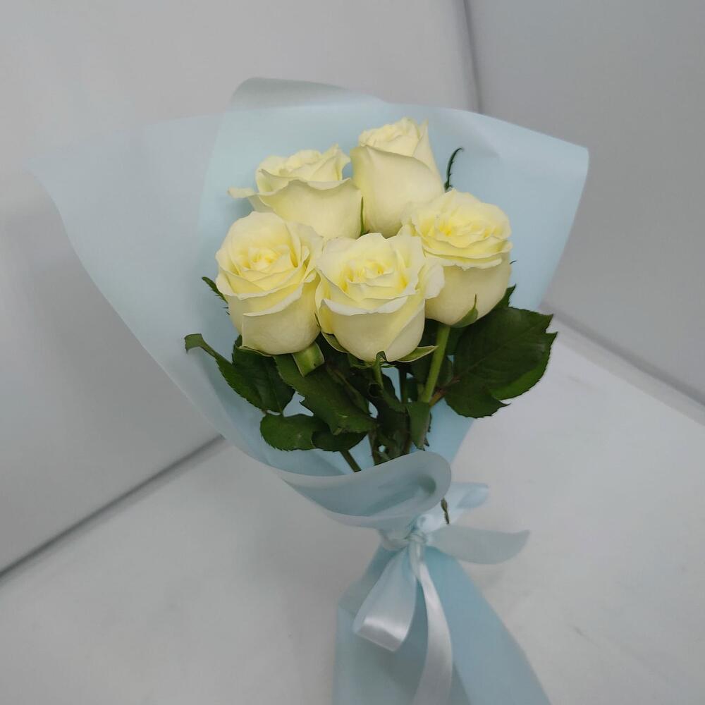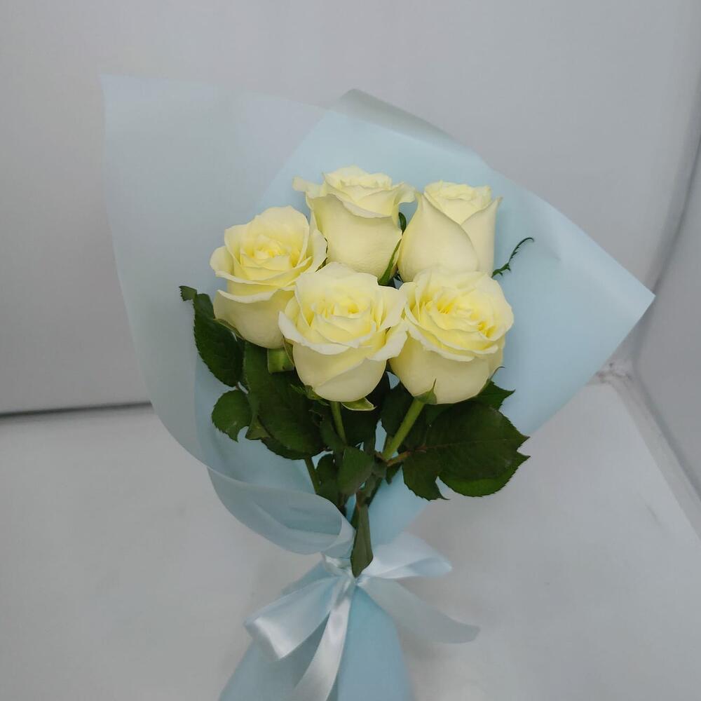 Букет-комплимент из 5 Роз ванильных