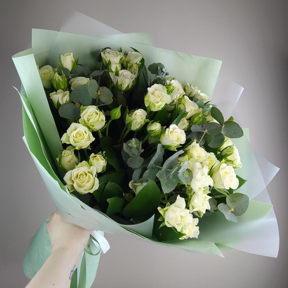 Букет кустовая роза с эвкалиптом