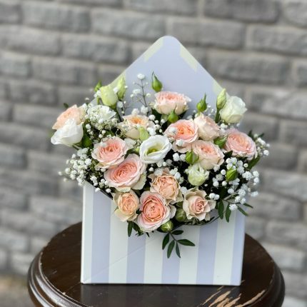 “Атлас☁️” – цветочная композиция с зефиром в деревянном ящике