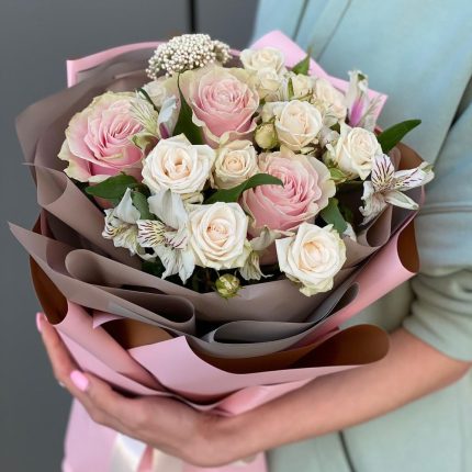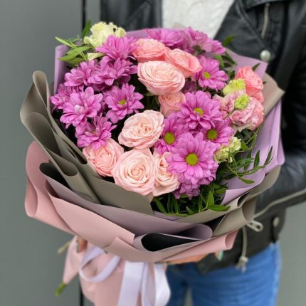 Букет из роз, хризантемы и альстромерии в оформлении!