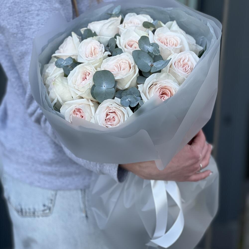 Эвкалипт – 1 шт. Оформление – 1 шт. роза ohara – 15 шт.