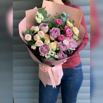 Букет цветов в фиолетовых, розовых и кремовых тонах