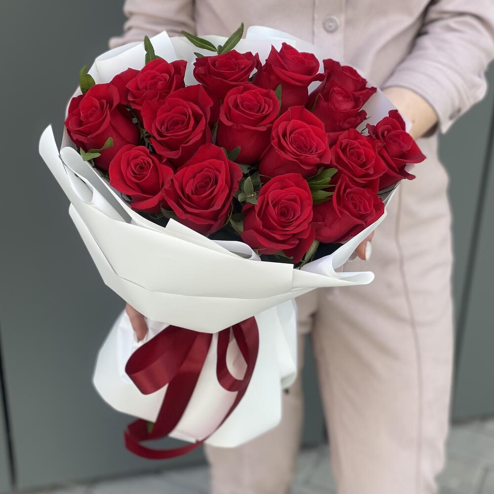 Метки: 15 роз, Красные розы, от 3000 до 4000 руб, Роза 50 см