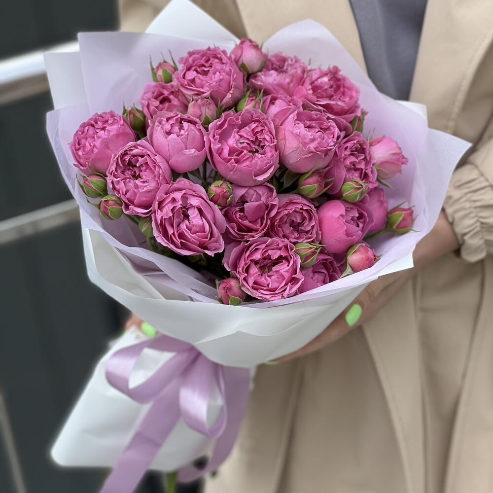 Букет из 5 веточек кустовых пионовидных роз в оформлении!