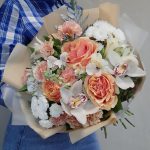 Букет с пион розой и орхидеей