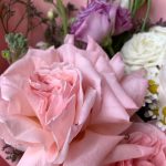 Букет с пионовидной розой, матиолой и гвоздикой