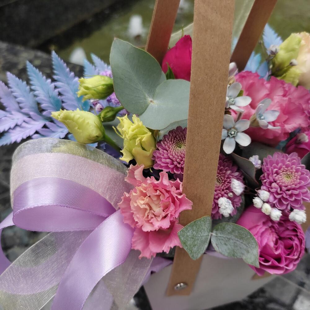 Прекрасная небольшая композиция в картонной сумочке (При заказе просьба обратить внимание на размеры товара)