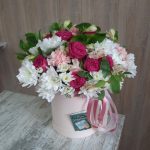 Букет пион роз в шляпной коробке (К 001)