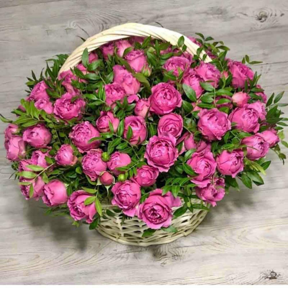 Роза кустовая пионовидная – 30 шт.Оазис флористический – 3 шт.Корзина большая – 1 шт.