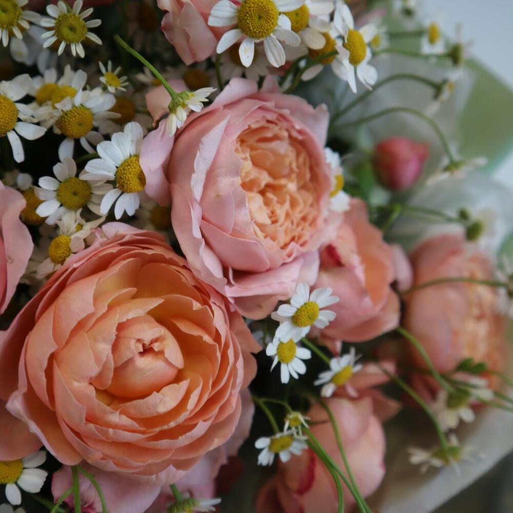 Категории: Кустовые розы, Пионовидные розы, Розы, Ромашки