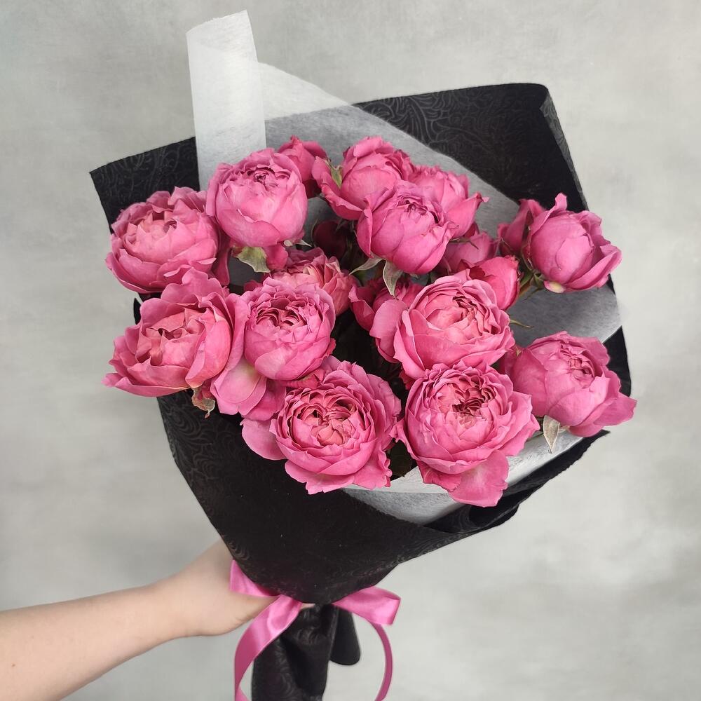 Упаковка дизайнерская – 1 шт.Пионовидная кустовая роза – 5 шт.