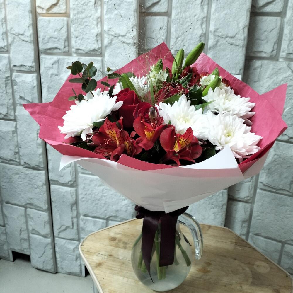 Категорий: Альстромерии, Кустовые розы, Лилии, Розы, Хризантемы