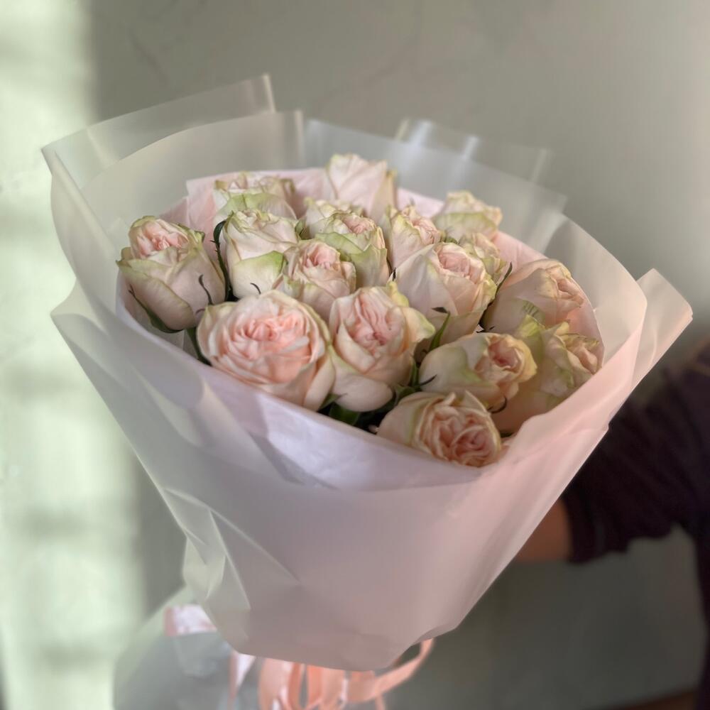 25 пионовидных кустовых роз Джульетта розбери. Букет 295 Kimbirly Flowers