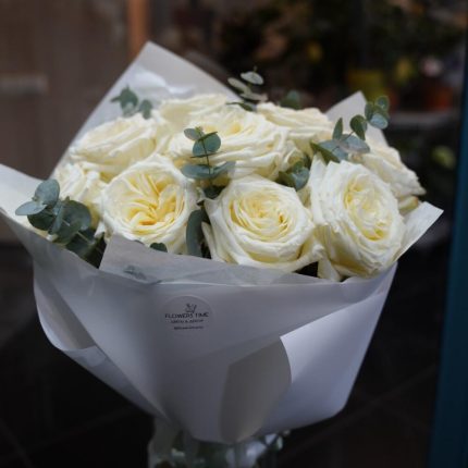кустовая пионовидная роза сильвия пинк – 10 шт. Стифа – 3 шт. Эвкалипт – 3 шт.