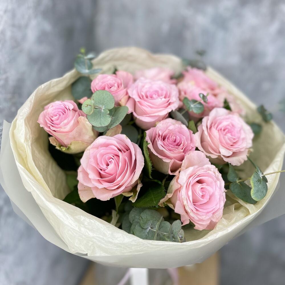 Нежно розовые розы с эвкалиптом