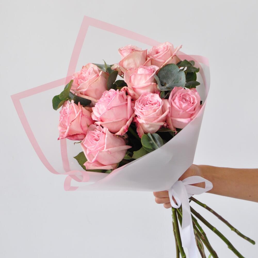 Эвкалипт – 3 шт.розы pink o’hara – 9 шт.