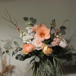 Амариллис – 1 шт.Орнитогалум – 1 шт.Маттиола – 6 шт.Пион – 1 шт.Ранункулюс – 2 шт.Роза пионовидная – 1 шт.Эвкалипт – 5 шт.ветки тополя – 1 шт.