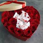 “Сладкое сердце ” – цветочная композиция с сладостями в коробке “Сердце”