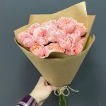 Нежнейшая пионовидная роза Джульетта украшает все вокруг, ей не нужна красочная упаковка. Минималистичный крафт выгодно подчеркивает изящные изгибы пионовидных бутонов нежно-розовых оттенков. Ни одна Джульетта не устоит Чтобы букет радовал вас дольше, мы подарим вам … Показать ещёспециальное средство, которое надо будет добавить в вазу с холодной водой. Не забудьте подрезать цветы каждые 2 дня и менять воду – это тоже продлевает жизнь букету!