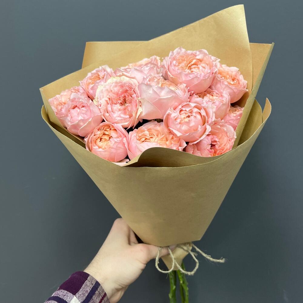 СКУЧАЮ ПО ТЕБЕ Кустовые розы Джульетта премиум в крафте