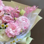 Категорий: Гвоздики, Кустовые розы, Лизиантусы, Пионовидные розы, Розы, Ромашки