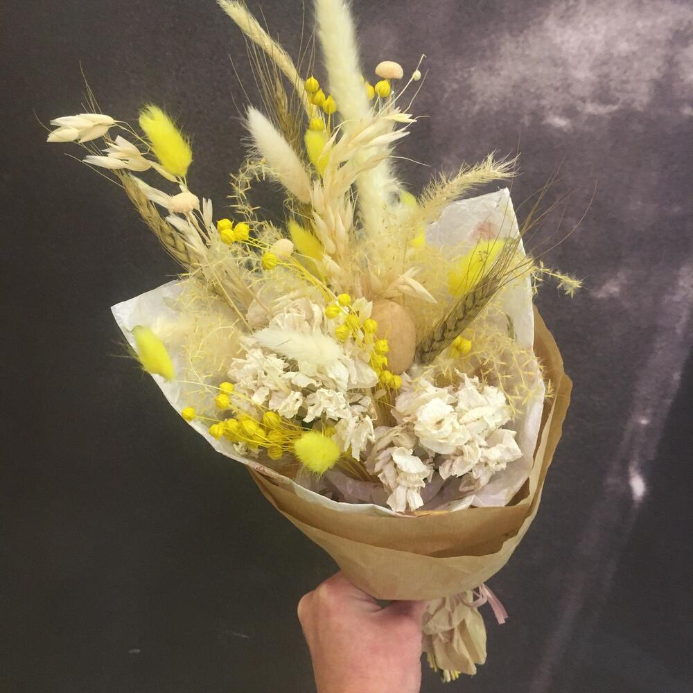 гортензия сухоцвет – 2 шт.рож – 2 шт.Лагурус – 8 шт.Ковыль – 2 шт.дополнительные цветы – 7 шт.Грецкий орех – 1 шт.