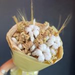 Хлопок – 3 шт.Статица – 5 шт.Лагурус – 9 шт.Пшеница – 3 шт.пучок колосков – 3 шт.декоративная упаковка – 1 шт.Атласная лента – 1 шт.