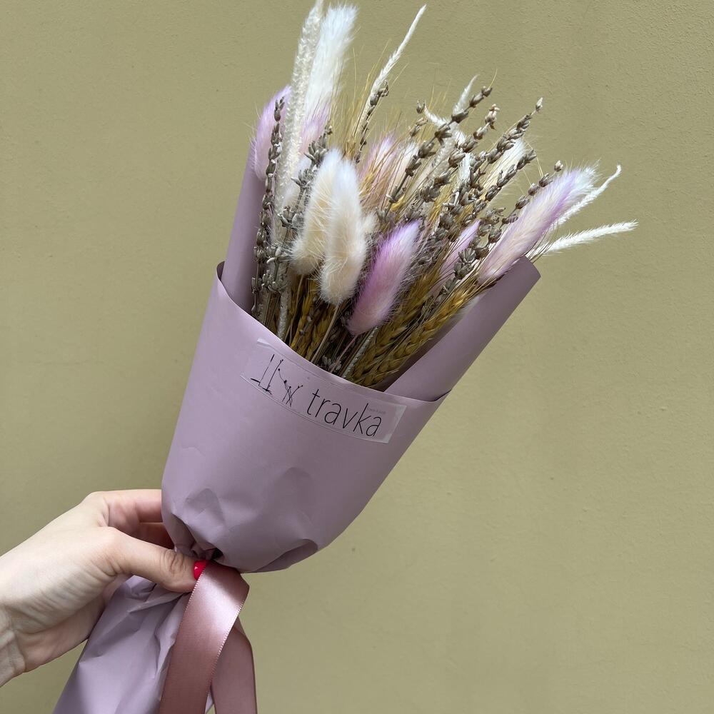 Лагурус – 10 шт.Лаванда – 13 шт.Пшеница – 5 шт.Упаковка дизайнерская – 1 шт.