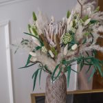Протея – 1 шт.Ваза – 1 шт.кортадерия – 1 шт.Лагурус – 20 шт.стабилизированный эвкалипт ветка – 10 шт.