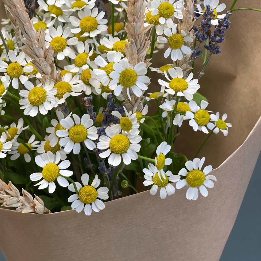 Букет с воздушными ромашками и лавандой “Полевой”