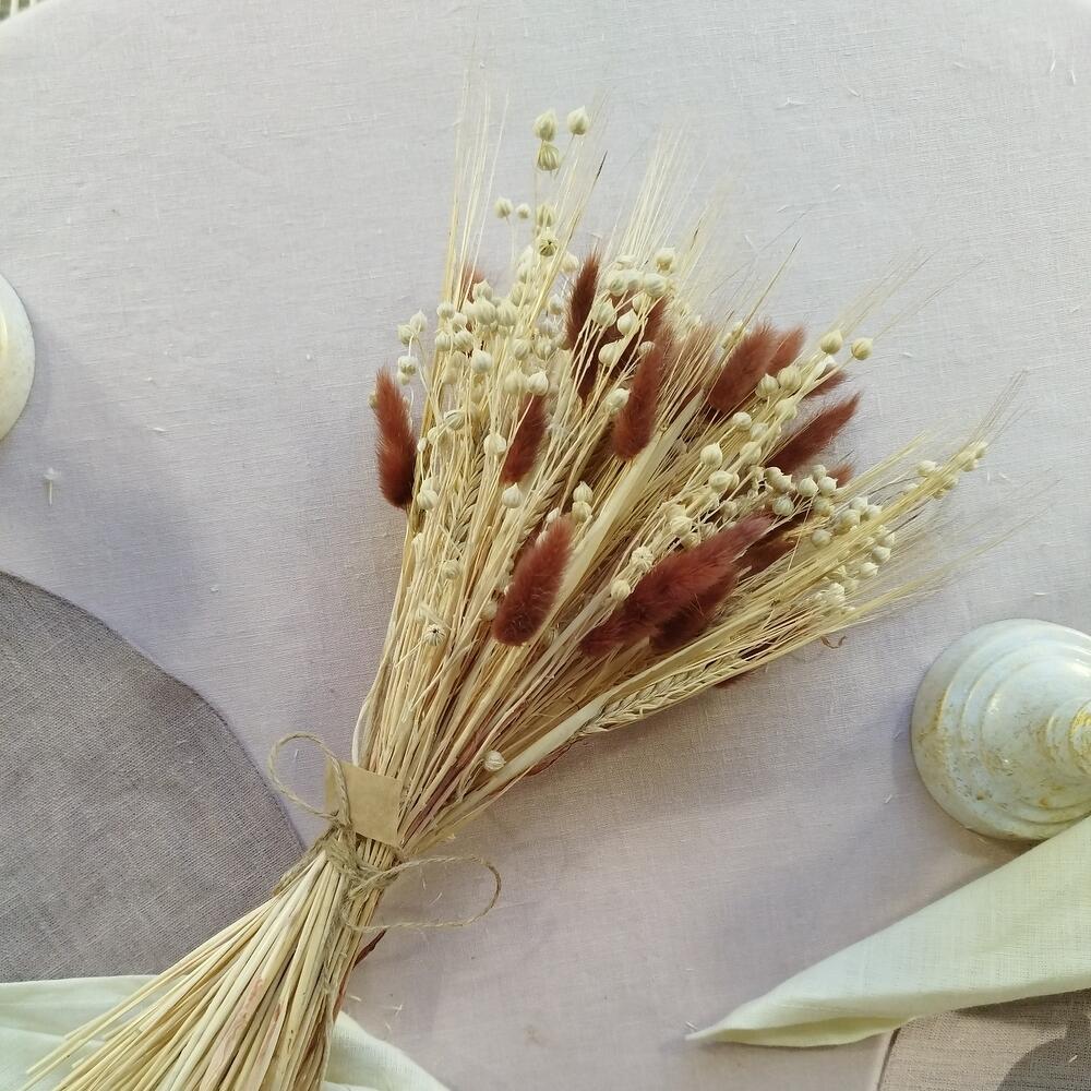 Лагурус – 20 шт.Колоски – 15 шт.лен сухоцвет – 10 шт.