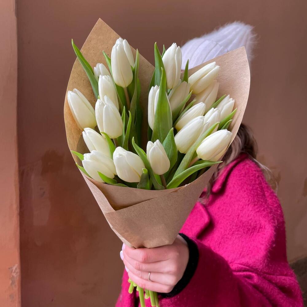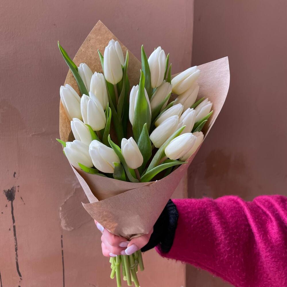 Крафтовая упаковка – 1 шт.Белый тюльпан – 21 шт.