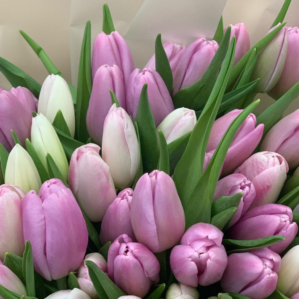 Тюльпан – 101 шт.дезайнерская упаковка – 2 шт.Атласная лента – 1 шт.