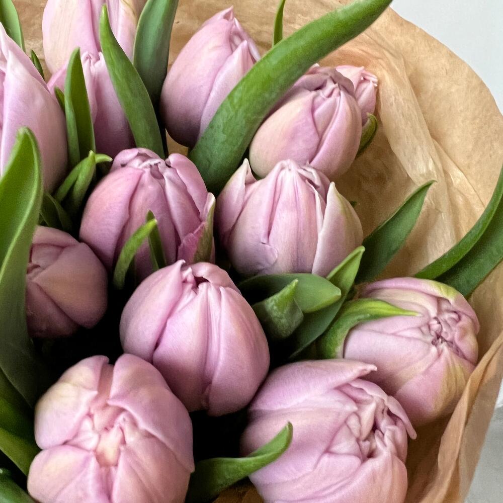 Сиреневые пионовидные тюльпаны в крафте