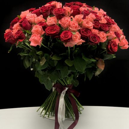 Букет из 101 красной и белой розы микс 35-40 см (Кения) в стильной упаковке